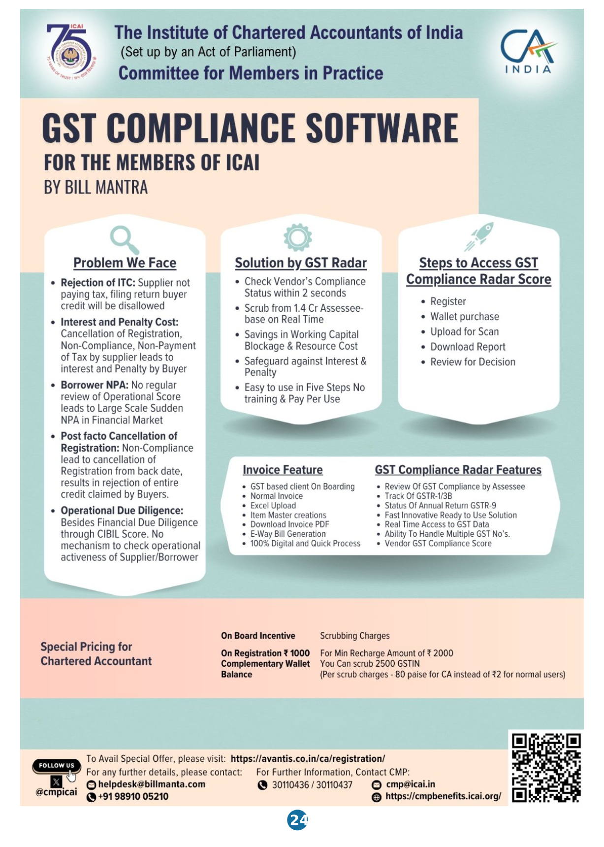 - Members may please visit https://cmpbenefits.icai.org/gst-audit-software-bill-mantra/ and register with ICAI membership details for validation.