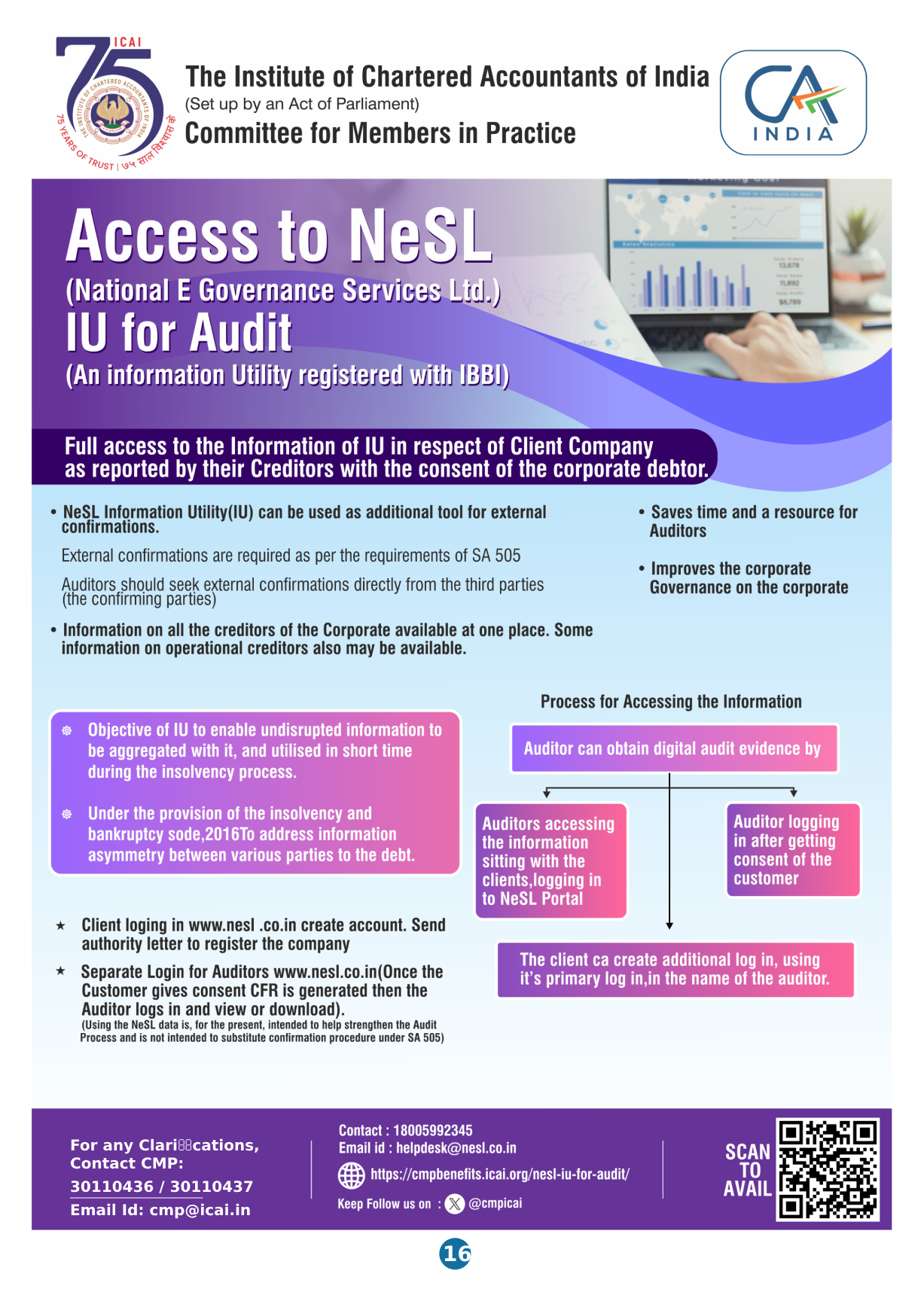 NESL-IU for Audit is a digital service offering by National E-Governance Services Ltd (NeSL). Its core purpose is to provide auditors and other stakeholders with reliable, authenticated financial information about debts/claims of client companies.