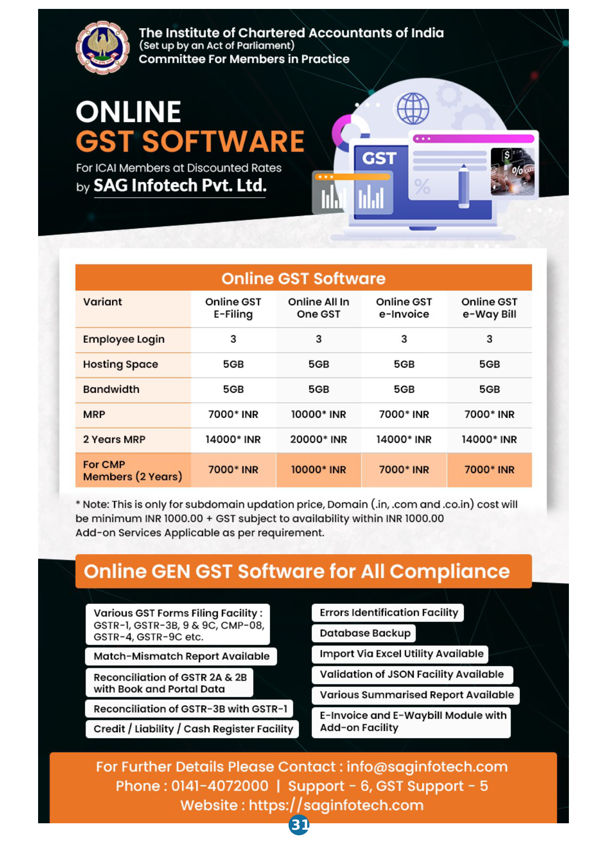 GST Software by SAG Infotech Pvt. Ltd. is available to ICAI members at discounted rates